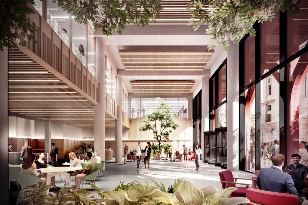 From the outset, sustainability guided every decision. The project targeted and achieved BREEAM Outstanding and NABERS 5-star ratings at design stage, placing it among the most environmentally advanced commercial buildings in the UK. Reducing embodied carbon was a constant priority. The structural team used post-tensioned concrete slabs, cutting steel content by about half, and took advantage of exceptionally firm ground conditions to avoid piling altogether. Designers even revisited structural support levels to reduce concrete use further while maintaining full integrity.