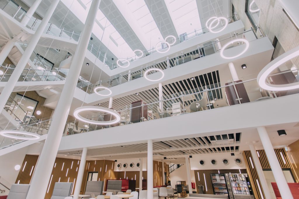 Spaces link to specialist IoT teaching facilities and include bespoke areas for flexible, digital and collaborative learning. On the ground floor a new café and breakout zone is available for students to enjoy.