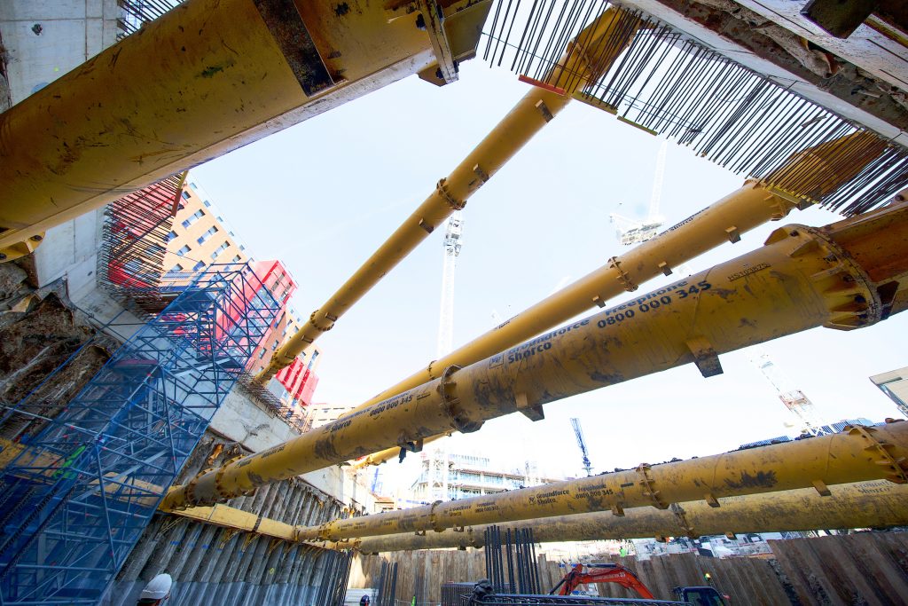 Due to the complexity of excavation, a variety of propping equipment was required, ranging from light-duty MP30 mechanical struts to the MP375, one of the largest in the Groundforce Shorco range of modular hydraulic struts, capable of supporting a load of 375 tonnes.