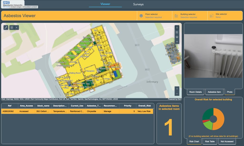 New applications for RAAC and asbestos management involve performing digital surveys on mobile devices, which feed directly into the 3D model and visualise the different risk levels. By providing more accurate and timely data, the new system is driving more effective maintenance regimes to improve safety. Digitising asbestos management has cut the time needed to prepare information by up to 10 days per month at one hospital site alone.