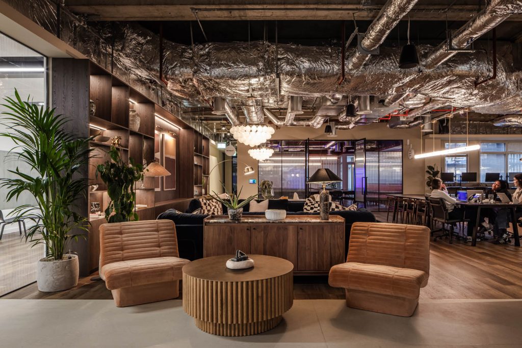 The building’s nickname – ‘the Flowerpot Building’ – inspired a botanical design concept woven throughout the workspace, with nature-inspired naming conventions including the Bloom Lounge business reception area and The Greenhouse central social space.