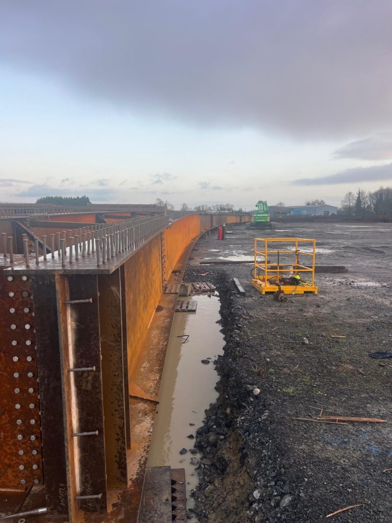 A full trial assembly of the bridge steelwork took place in December 2025 at Jamestown’s steel manufacturing facility in Portarlington, Ireland. In‑person inspections were carried out during production and the bridge installation executed through Chasetown Civil Engineering and their collaborative Shropshire Alliance partnership with Beaver Bridges and Foundation Piling.**