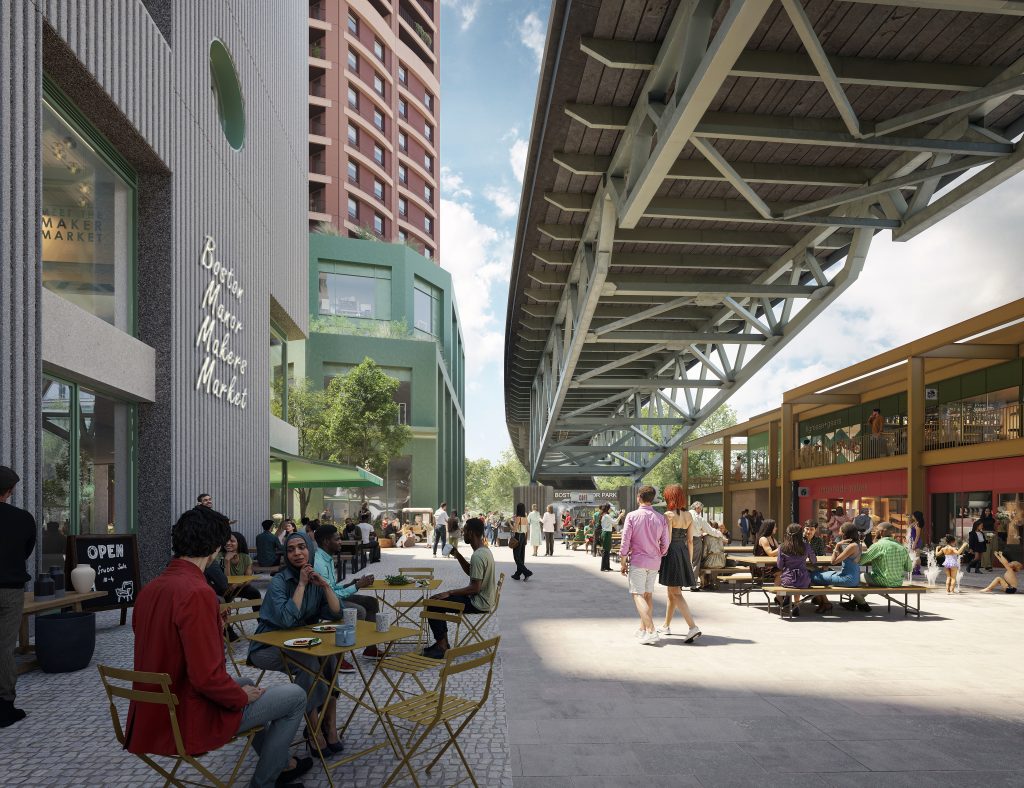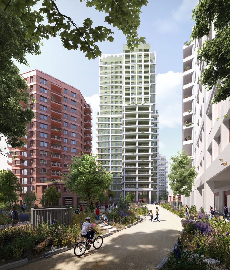 Spanning 13 acres, the approved scheme will deliver 2,324 new homes, including 227 social rent, 90 intermediate, 506 Purpose-Built Student Accommodation and 296 co-living units, alongside 24,000 sqm of commercial space. The development provides 22% affordable housing with a 70/30 split of Social Rent and Intermediate housing and will generate 1,980 permanent jobs.