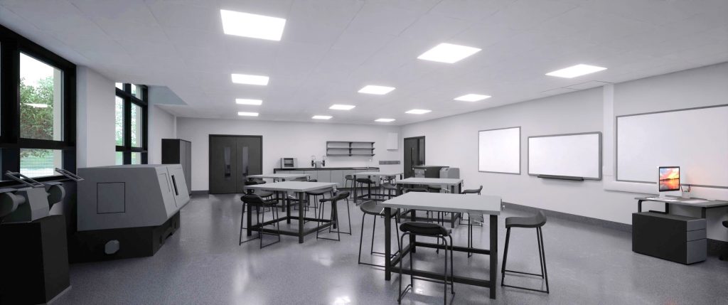 Sustainability is also central to the scheme. The new STEAM block is designed to achieve Net Zero Carbon in use and will incorporate a bio-solar green roof with photovoltaic panels to offset energy consumption. The surrounding external works will include a combination of hard and soft landscaping, creating new outdoor social and learning spaces for students.