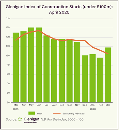 The Index focuses on the three months to the end of March 2026, covering all underlying projects, with a total value of £100m or less (unless otherwise indicated), with all figures seasonally adjusted.